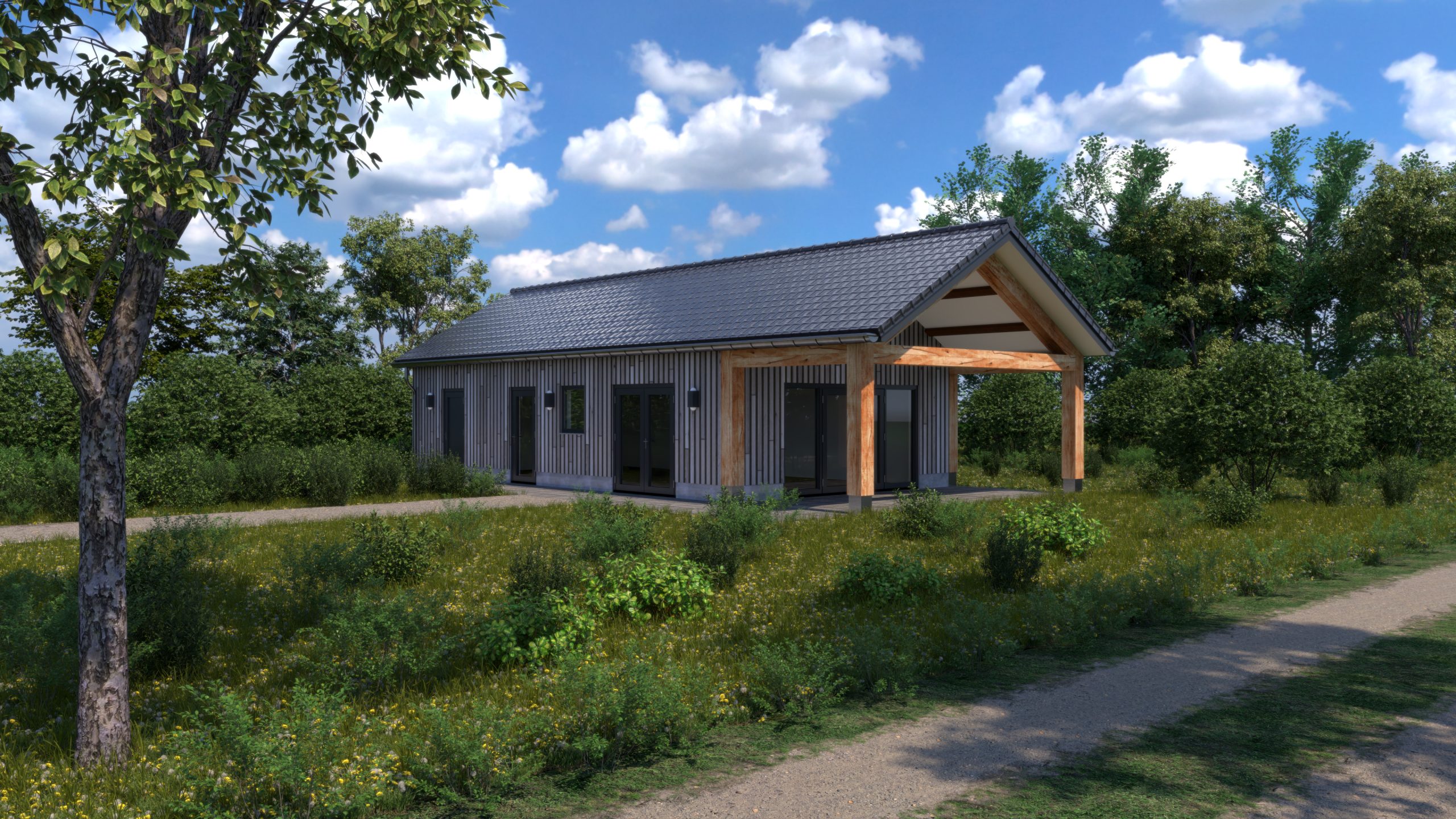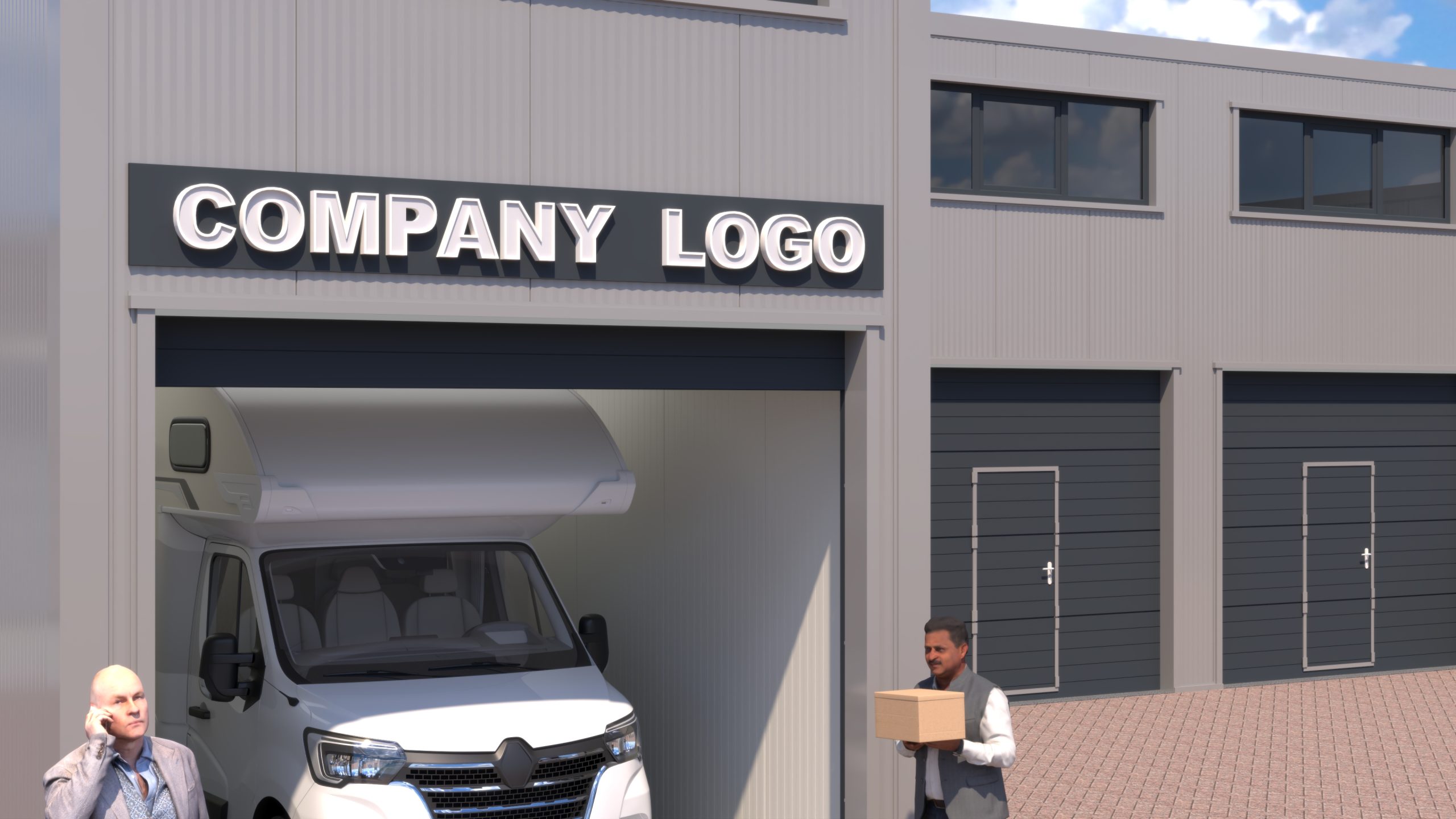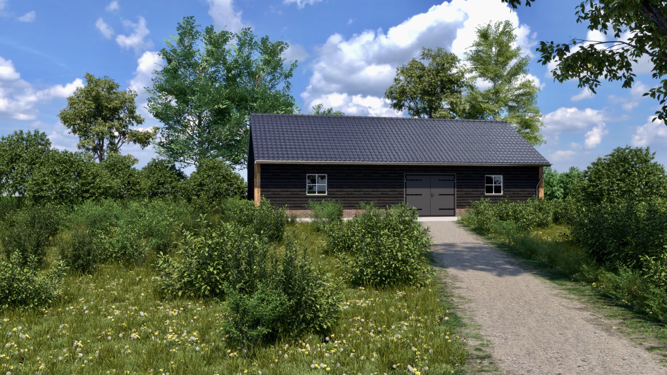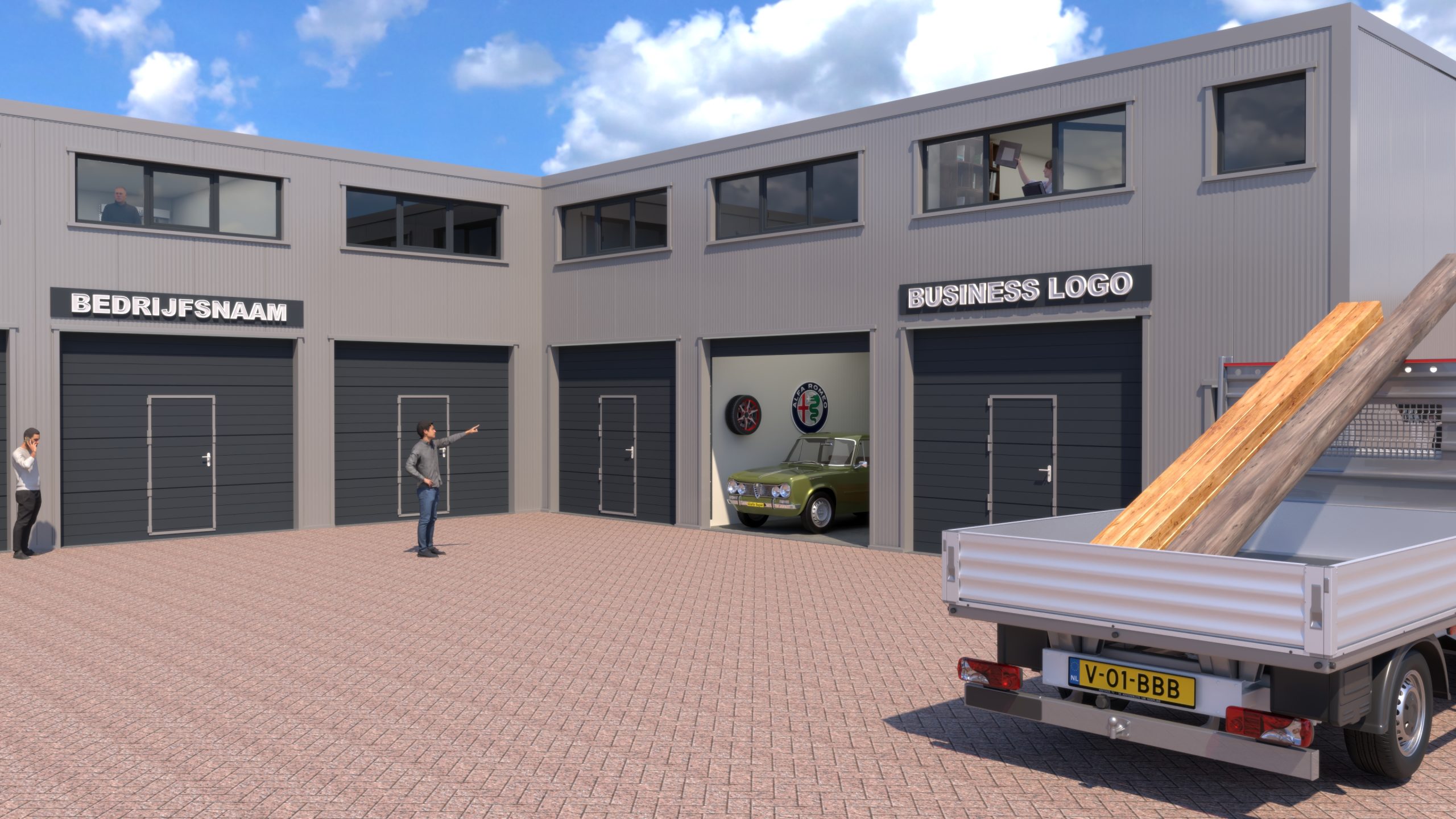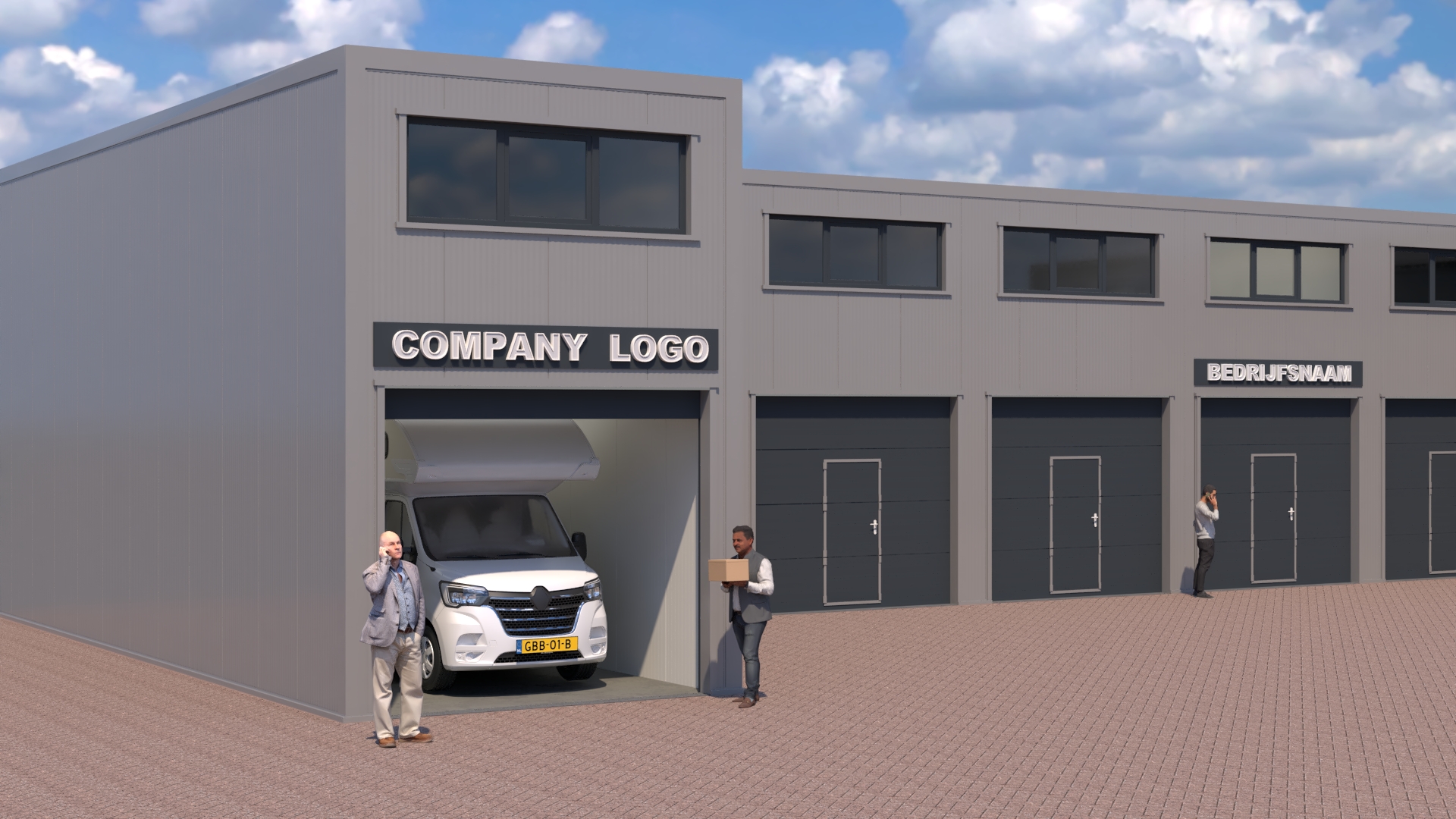 Visualisatie geheel nieuw te bouwen bedrijfs-/opslagunits